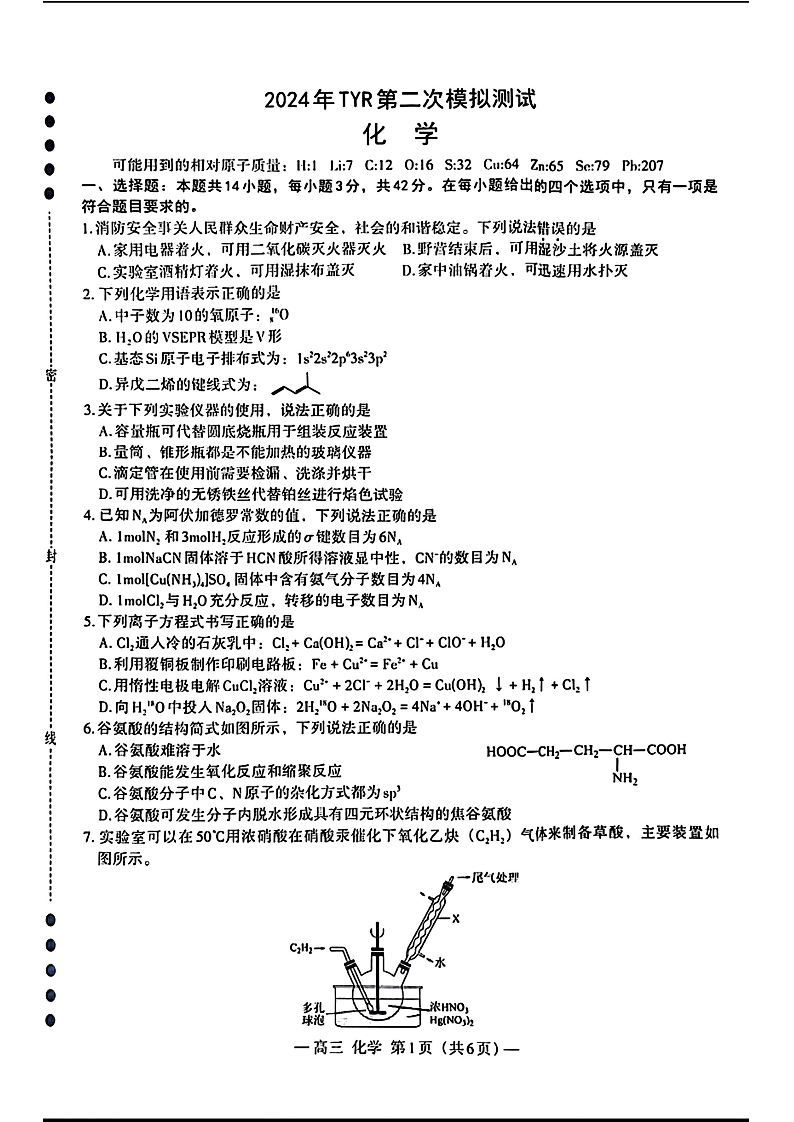 江西省南昌市2024届高三下学期二模考试(南昌二模)化学+答案