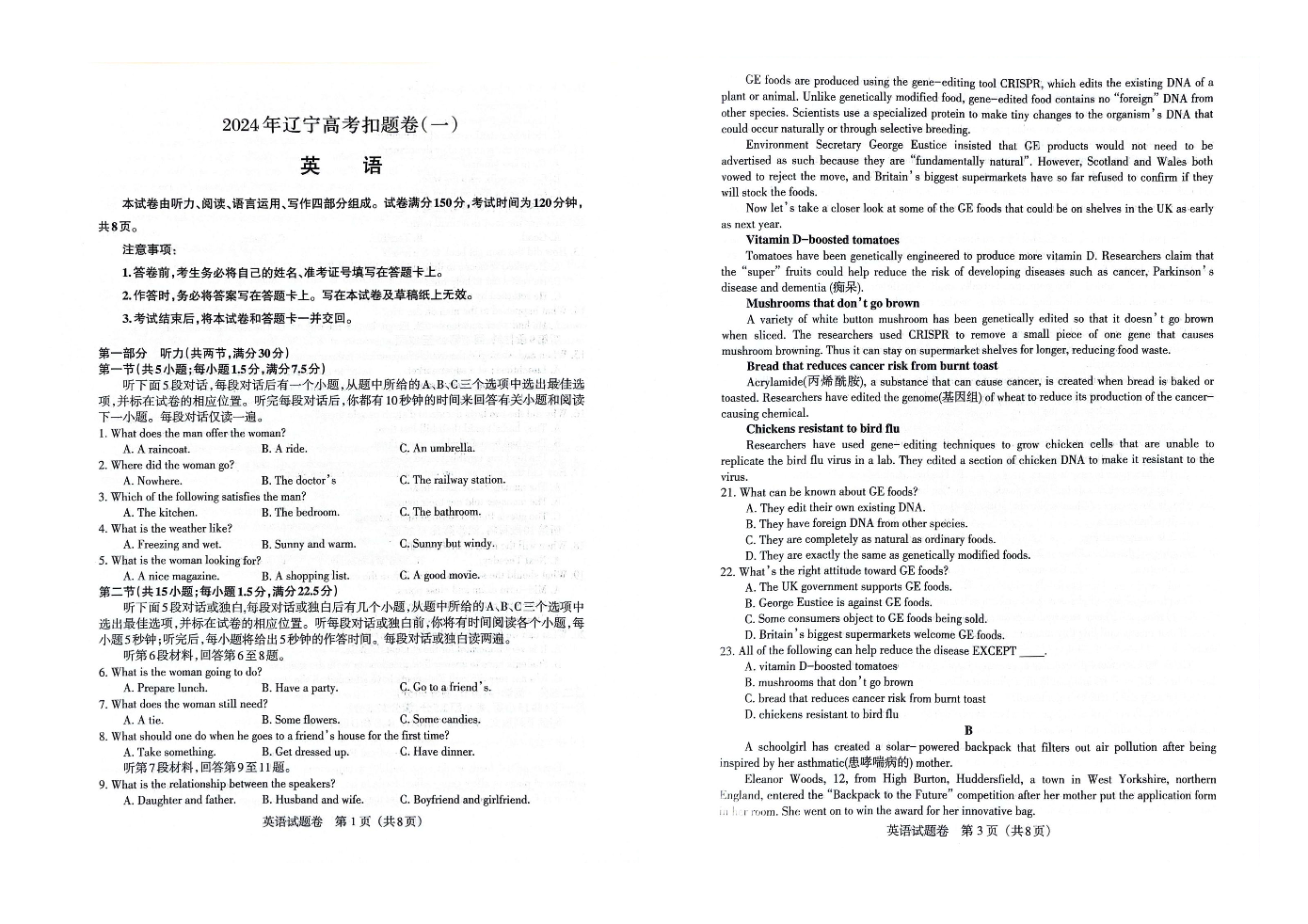 辽宁省2024届高三下学期高考扣题(一)英语