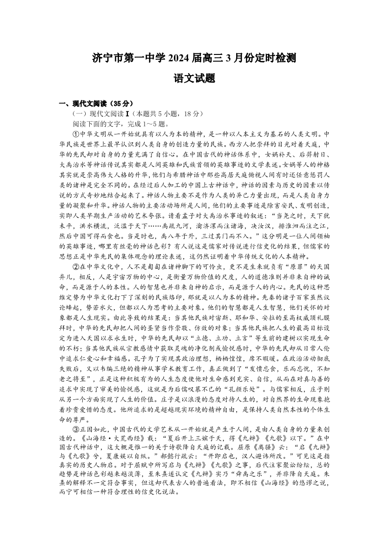 山东省济宁市第一中学2024届高三下学期3月月考语文+答案