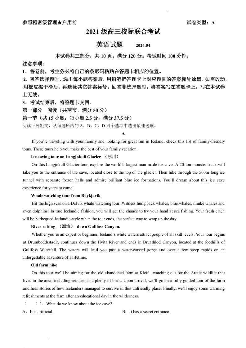 山东省日照市2024届高三下学期4月校际联合考试(日照二模)英语