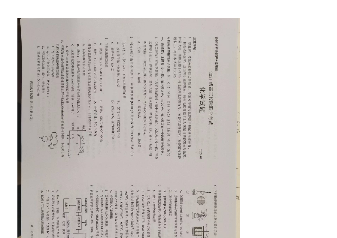 山东省日照市2024届高三下学期4月校际联合考试(日照二模)化学