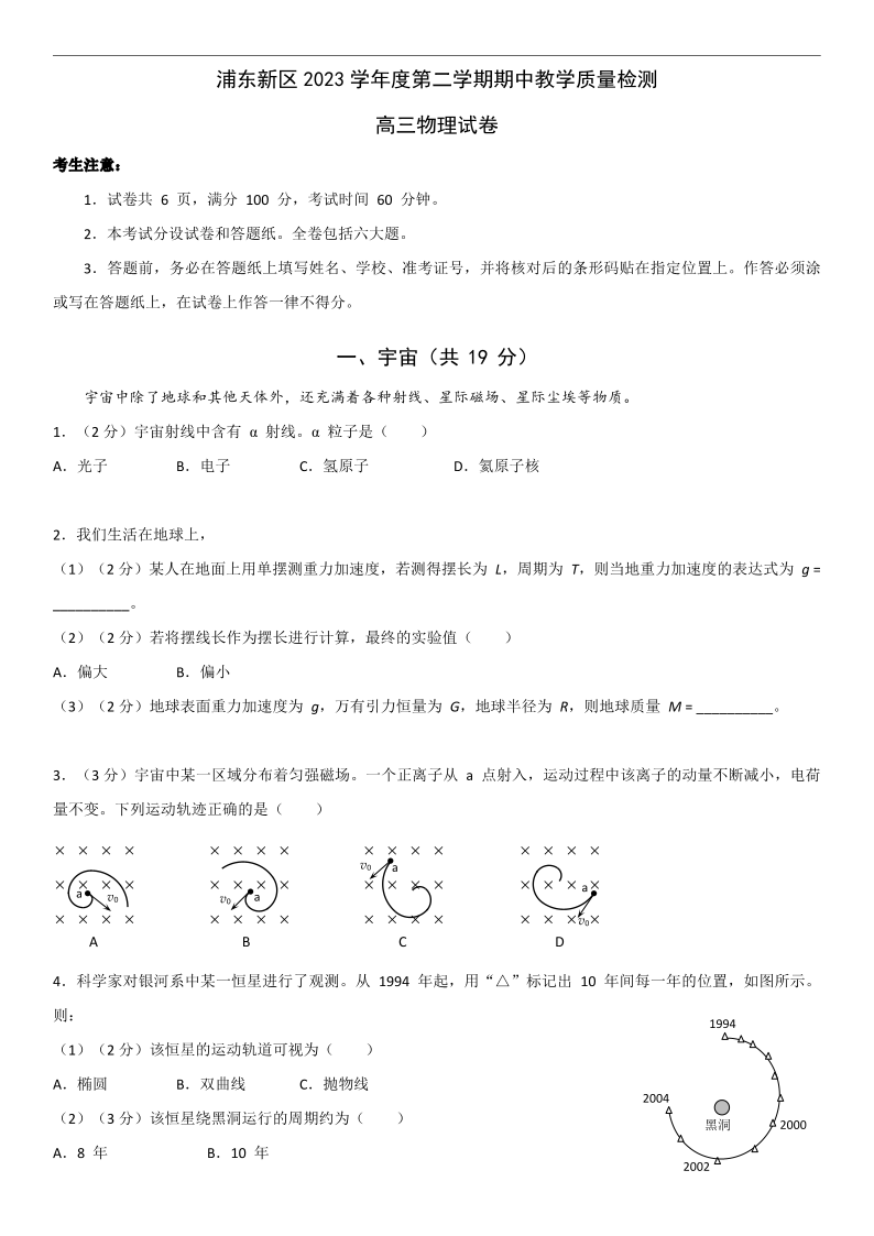 上海市浦东新区2024届高三二模物理