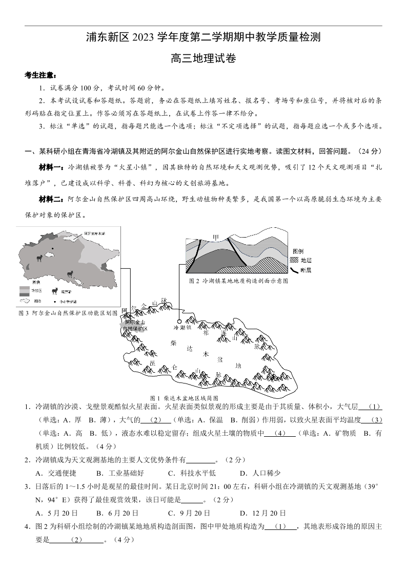 上海市浦东新区2024届高三二模地理