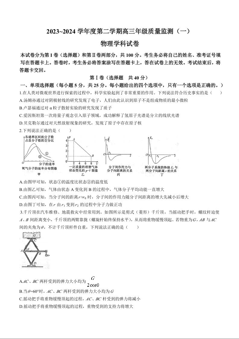 天津市南开区2024届高三下学期一模物理+答案