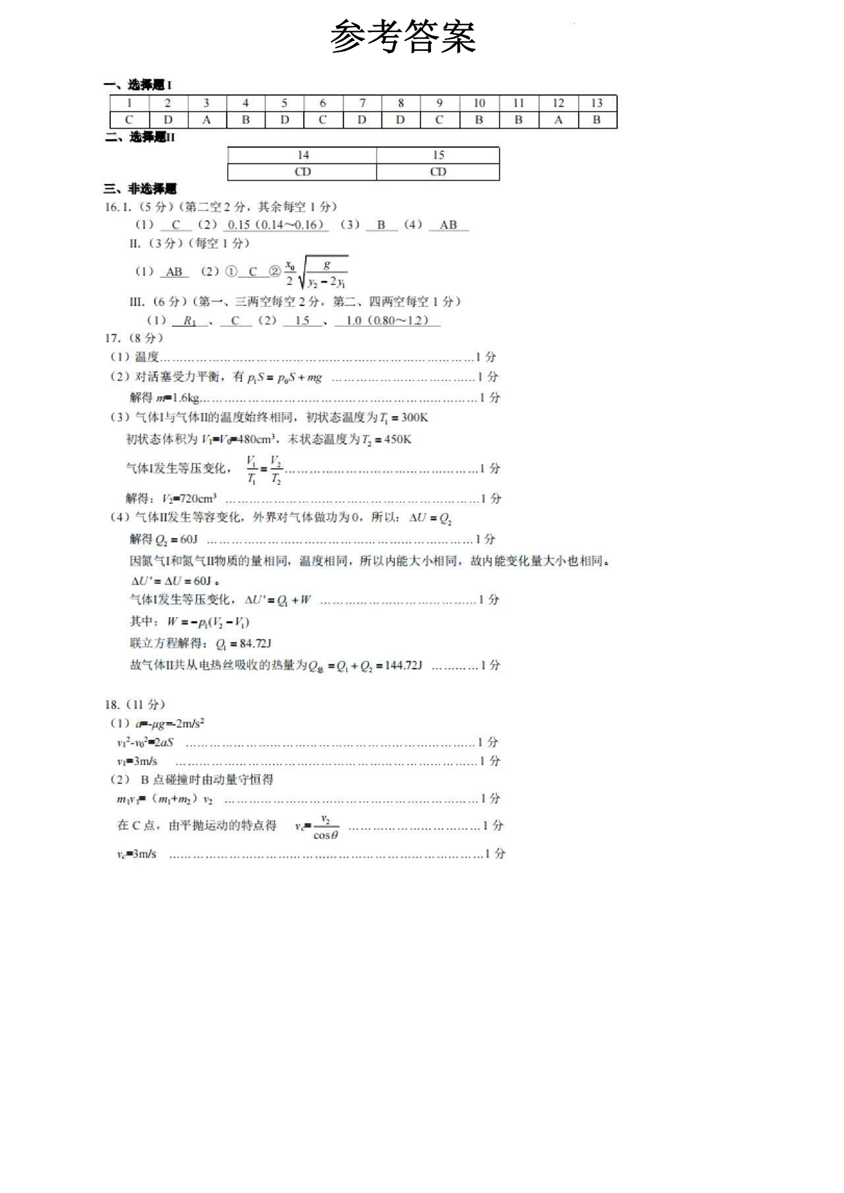 浙江省杭州市2024届高三年级教学质量检测(杭州二模)物理答案
