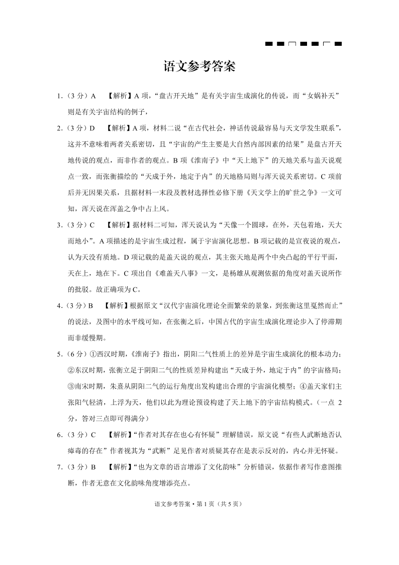 重庆市巴蜀中学2024届高考适应性月考卷(八)语文答案