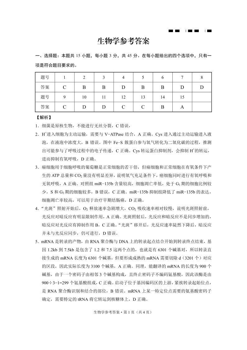 重庆市巴蜀中学2024届高考适应性月考卷(八)生物答案