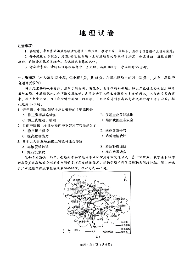 重庆市巴蜀中学2024届高考适应性月考卷(八)地理