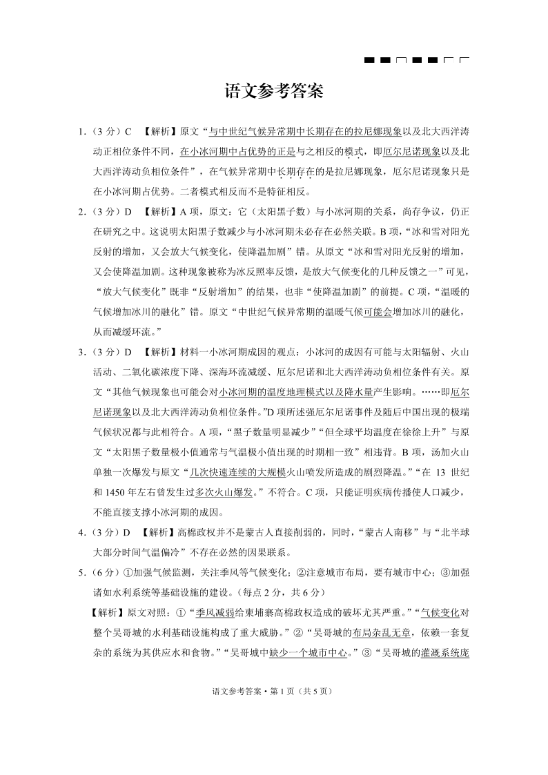 重庆市巴蜀中学2024届高考适应性月考卷(九)语文答案