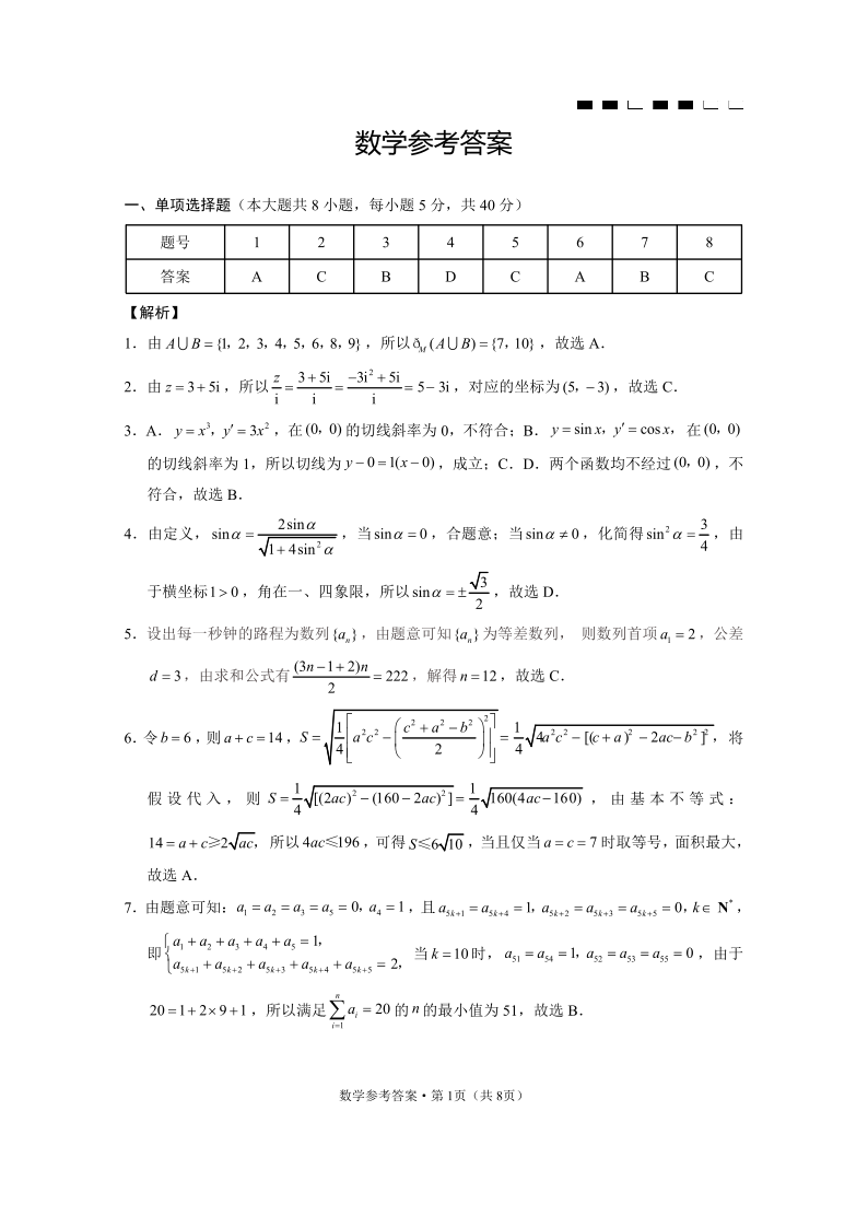 重庆市巴蜀中学2024届高考适应性月考卷(九)数学答案