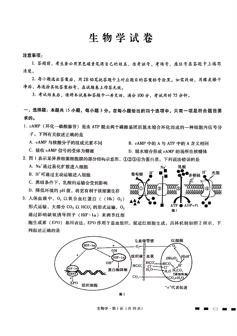 重庆市巴蜀中学2024届高考适应性月考卷(九)生物