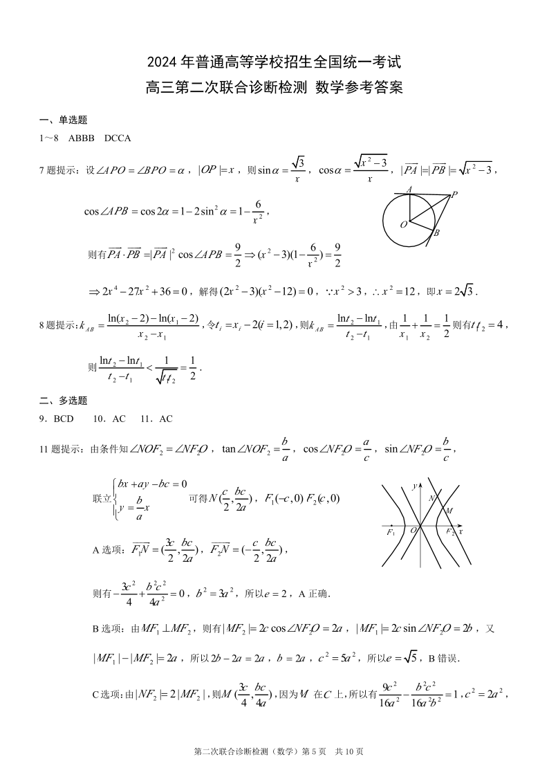 重庆康德二诊2024年普通高等学校招生全国统一考试高三第二次联合诊断检(重庆二诊)数学答案