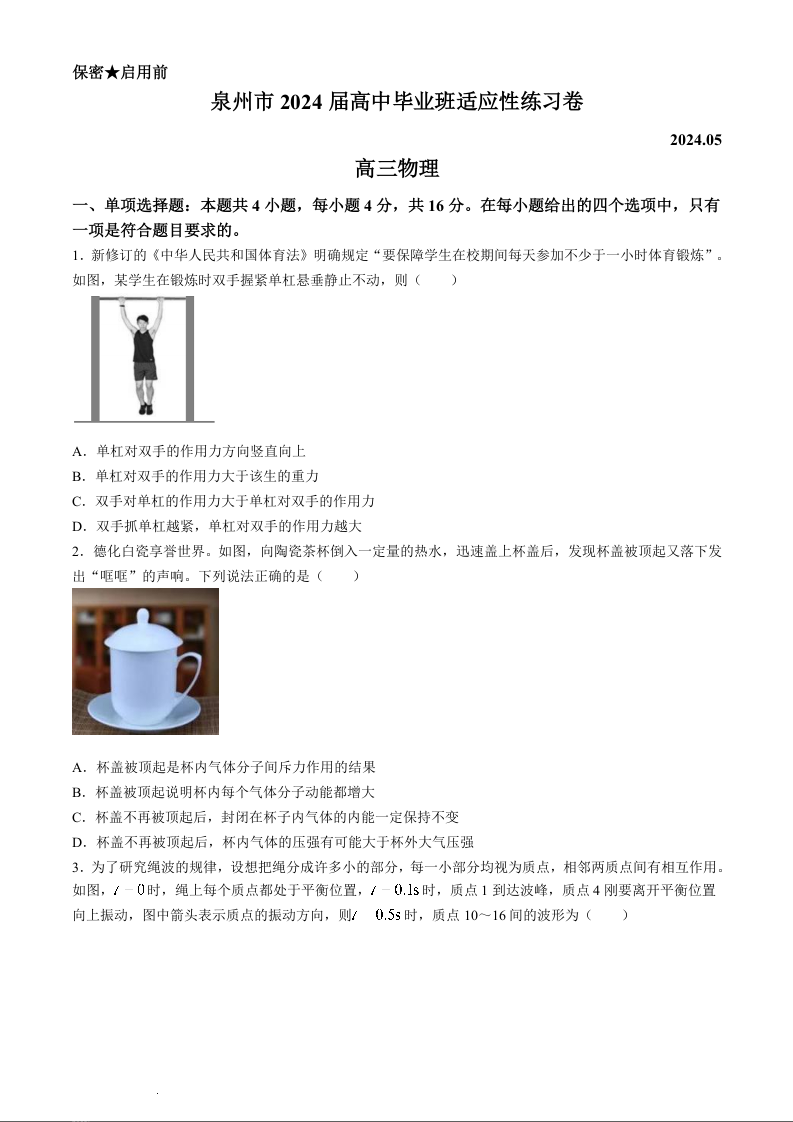 福建省泉州市2024届高三质量检测(五)物理+答案