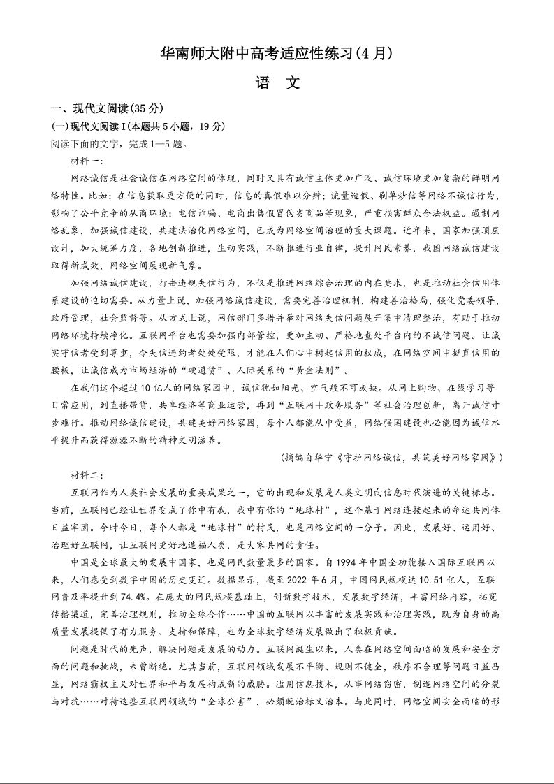 广东省华南师范大学附属中学2024届高三4月高考适应性练习语文+答案