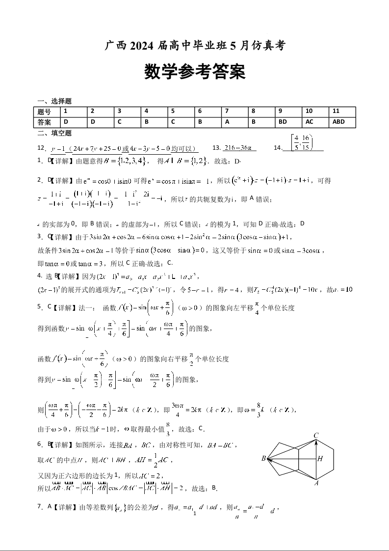 广西省2024届高三5月仿真考数学答案