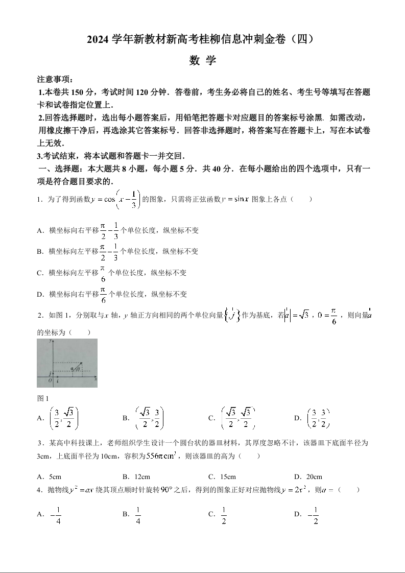 广西省2024届高三下学期新教材新高考桂柳信息冲刺金卷(四)数学+答案