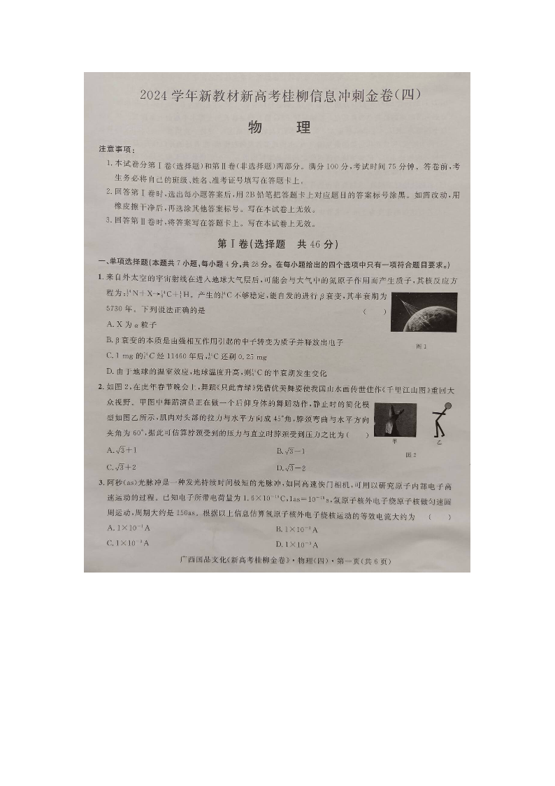 广西省2024届高三下学期新教材新高考桂柳信息冲刺金卷(四)物理+答案