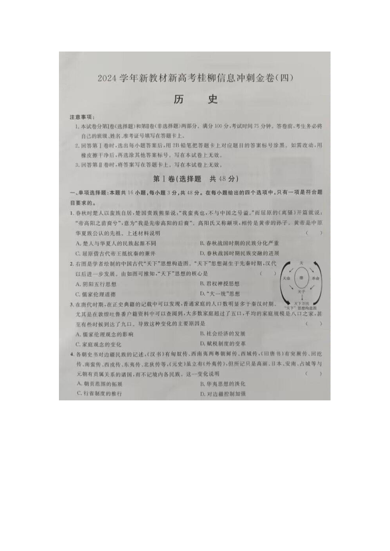 广西省2024届高三下学期新教材新高考桂柳信息冲刺金卷(四)历史+答案
