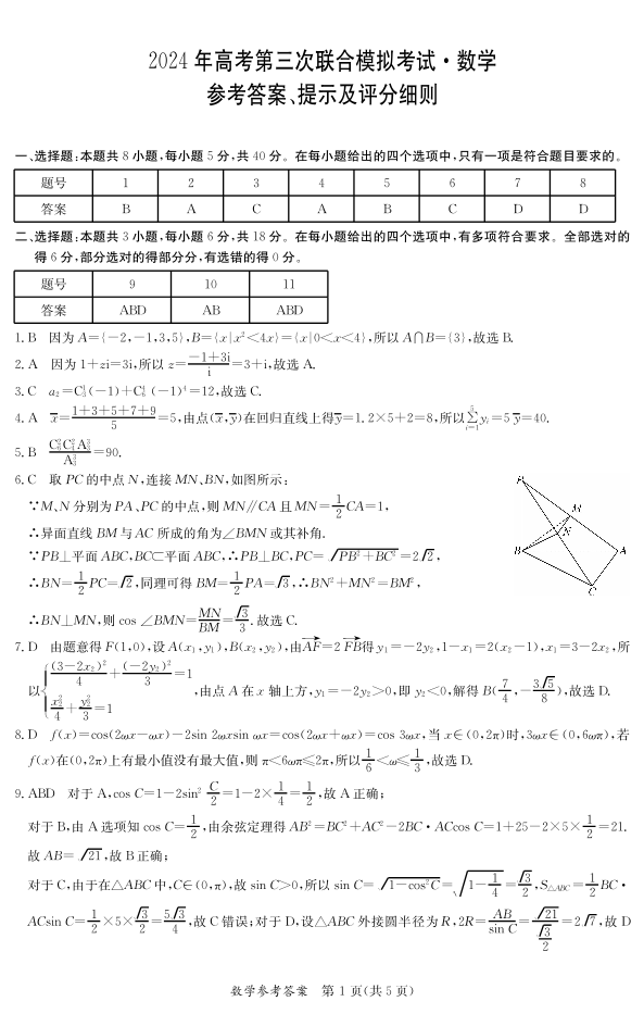 广西省桂林、来宾、北海2024届高三三模数学答案