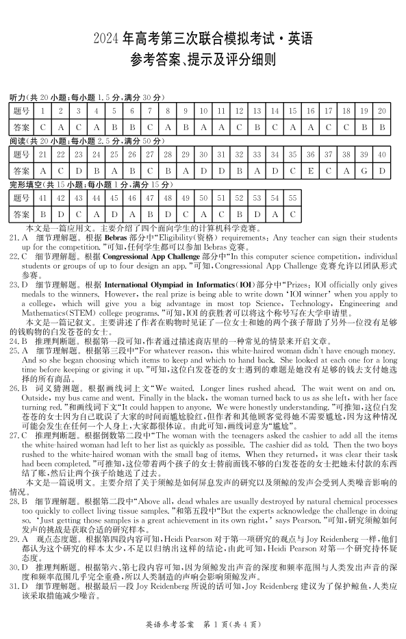广西省桂林、来宾、北海2024届高三三模英语答案