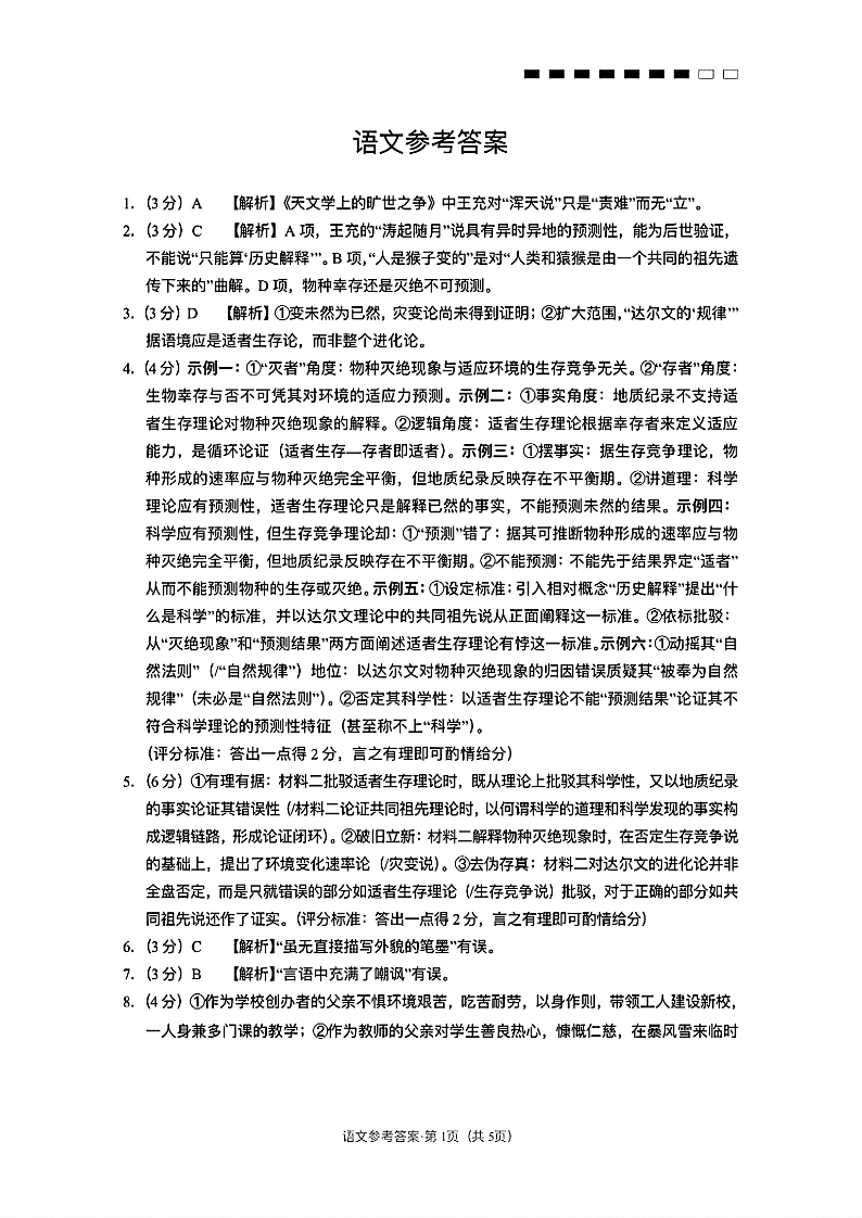 云南省云南师大附中2026届高考适应性月考卷(一)语文答案