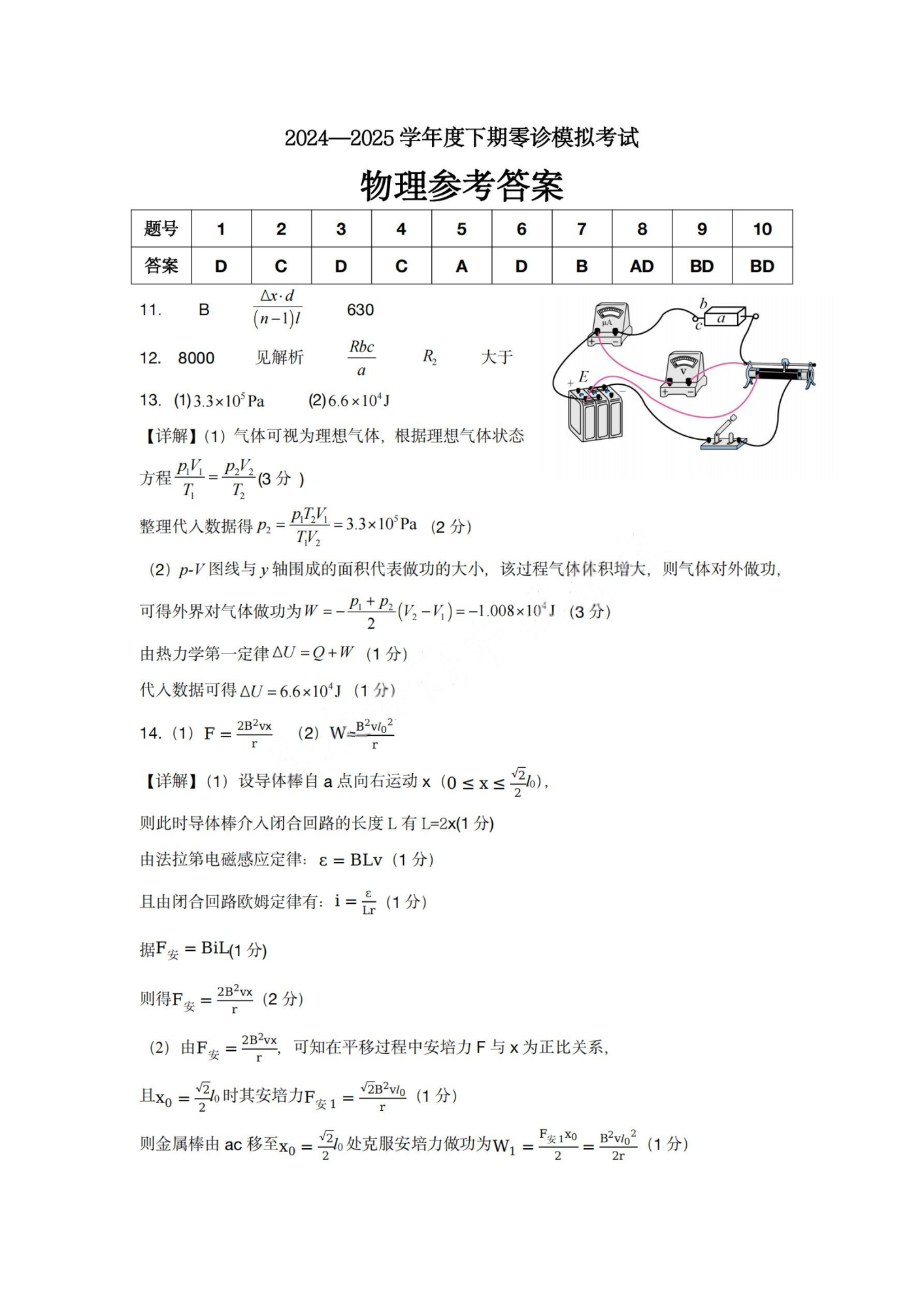 四川省成都七中2024-2025学年度下期高2026届零诊模拟考试物理答案