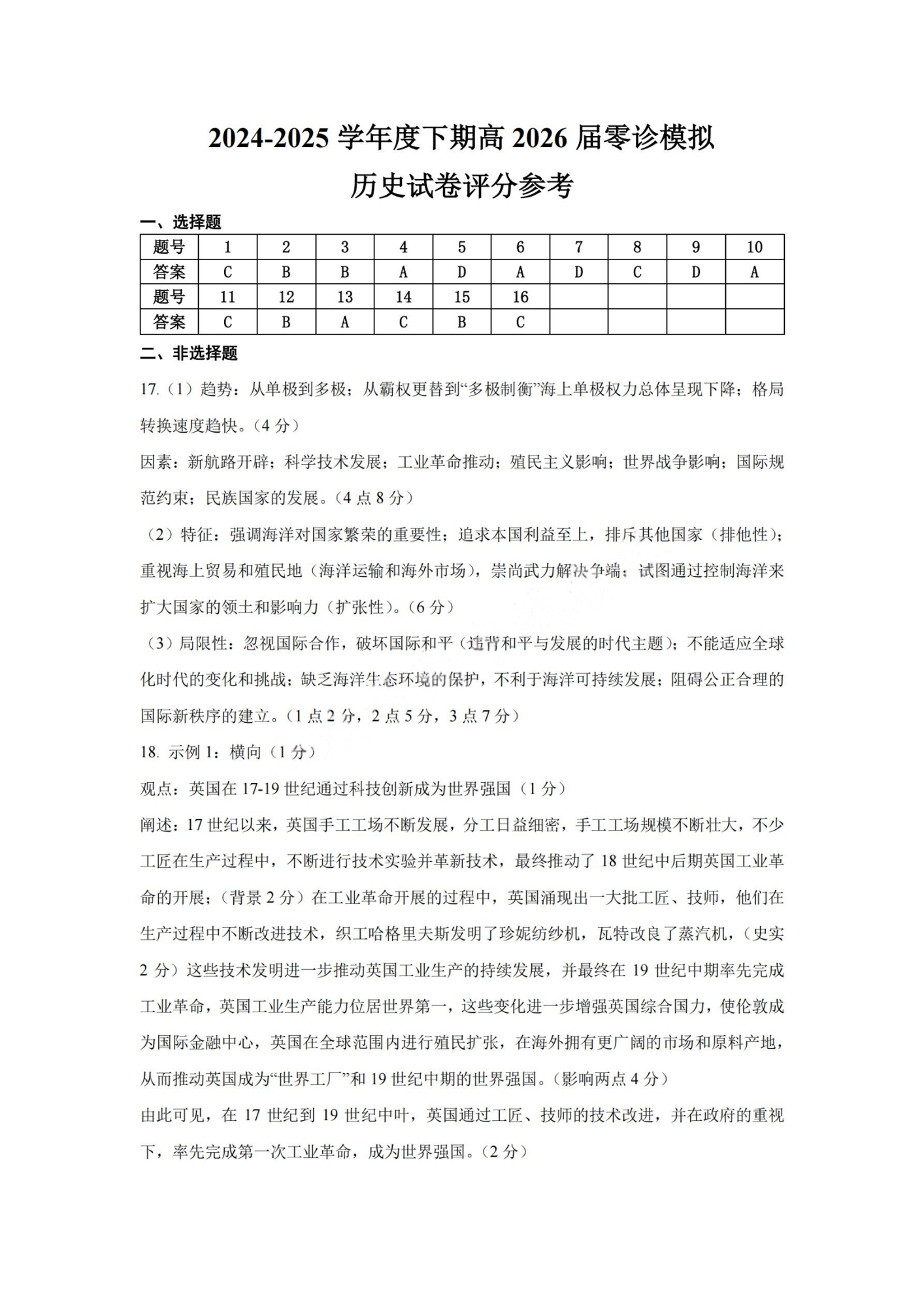 四川省成都七中2024-2025学年度下期高2026届零诊模拟考试历史答案