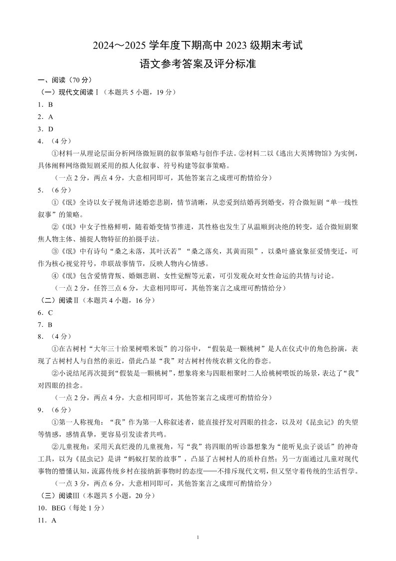 四川省成都市蓉城名校联盟2024-2025学年高二下学期期末考试语文答案