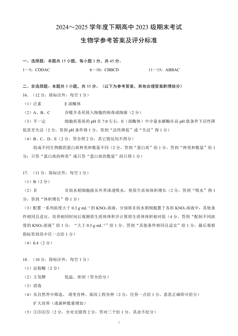 四川省成都市蓉城名校联盟2024-2025学年高二下学期期末考试生物答案