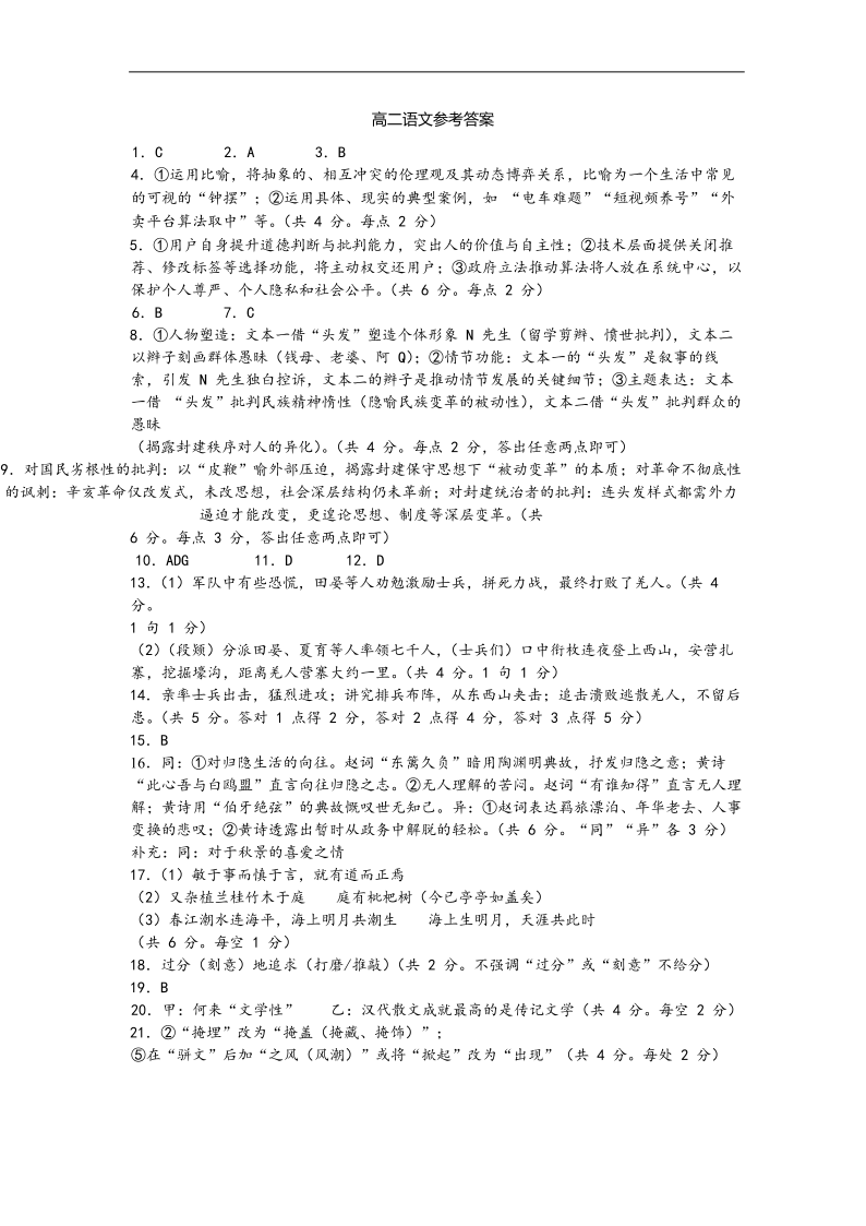 江苏盐城市2024-2025学年高二下学期期末考试语文答案