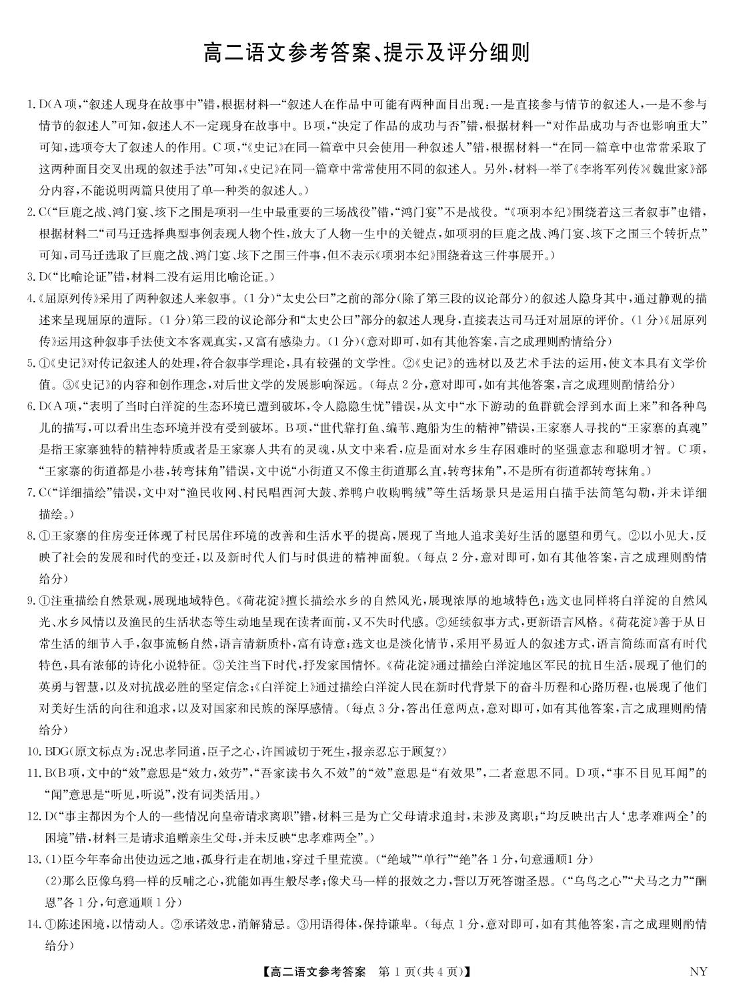 河南省区域高中2024-2025学年下学期6月高二期末语文答案