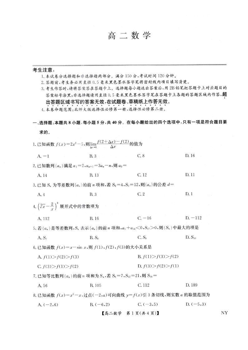 河南省区域高中2024-2025学年下学期6月高二期末数学