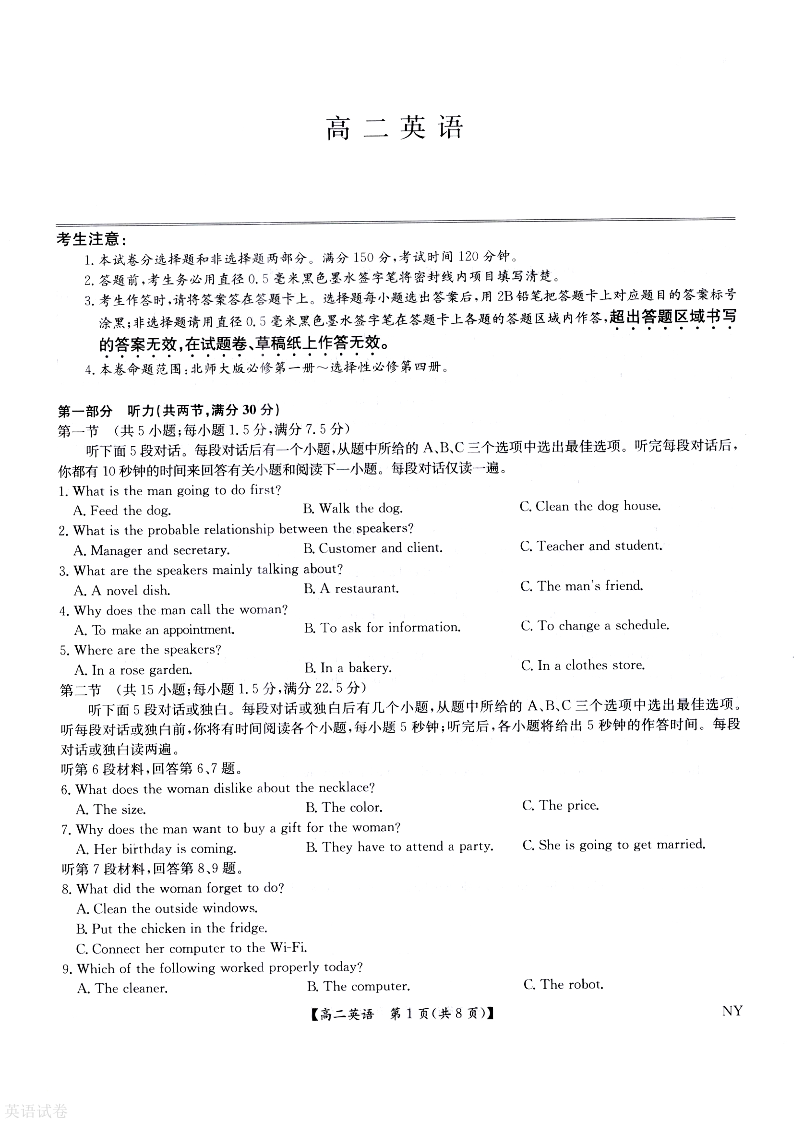 河南省九师联盟2024-2025学年高二下学期6月期末英语+答案
