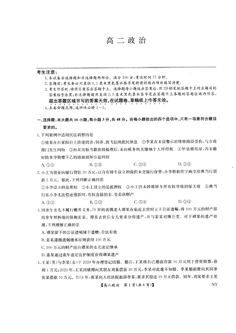 河南省九师联盟2024-2025学年高二下学期6月期末政治+答案