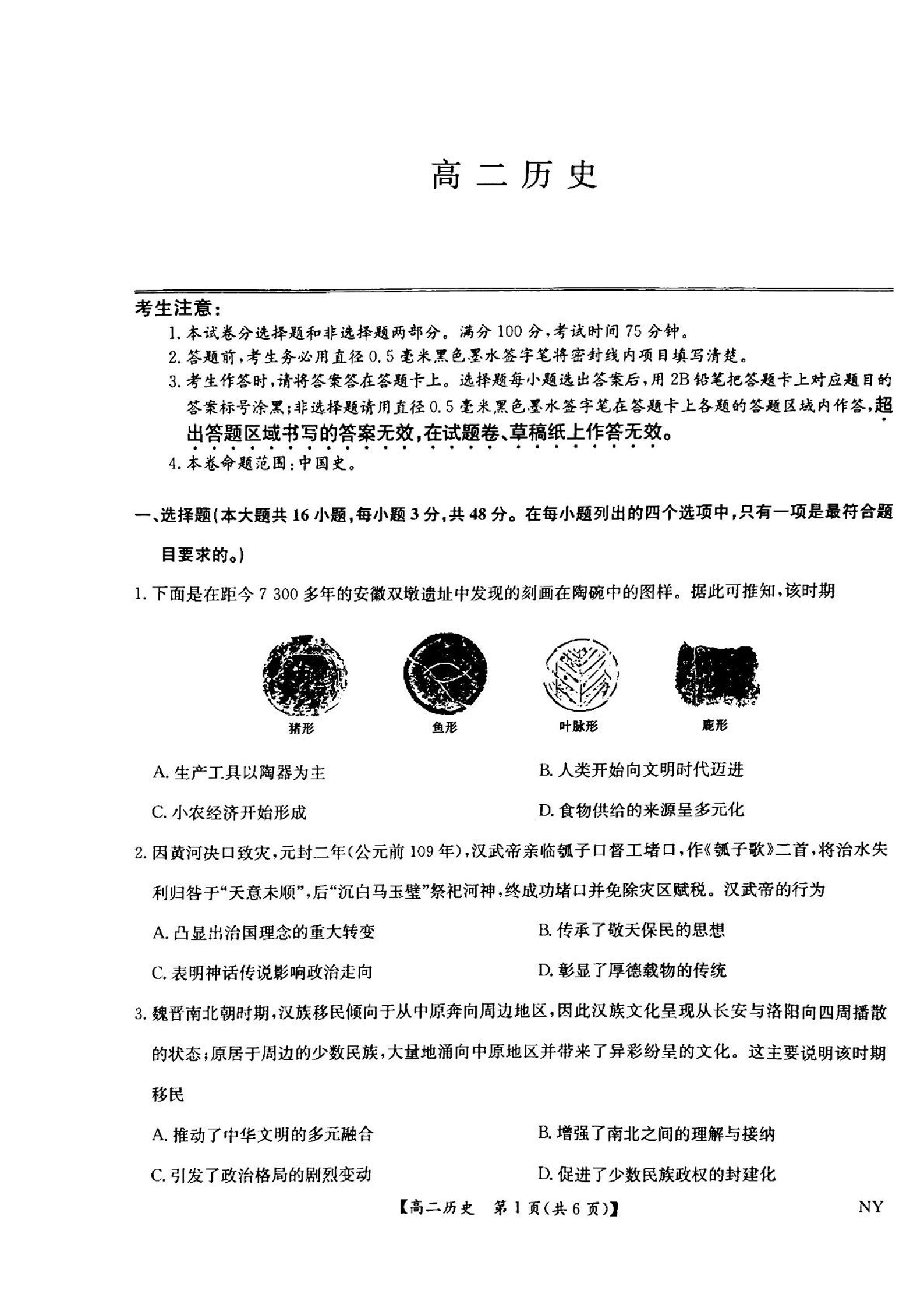河南省九师联盟2024-2025学年高二下学期6月期末历史+答案