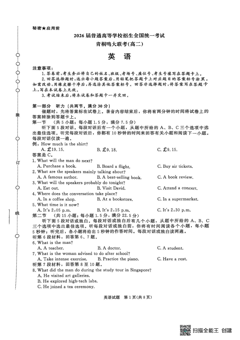 河南省青桐鸣2026届6月高二联考英语