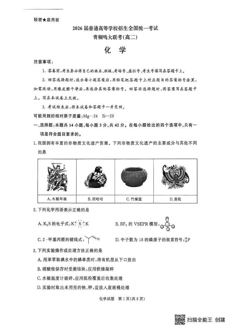 河南省青桐鸣2026届6月高二联考化学