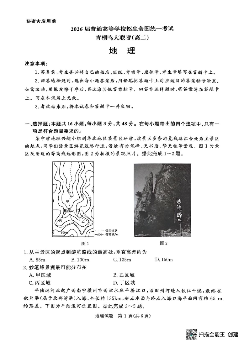 河南省青桐鸣2026届6月高二联考地理+答案