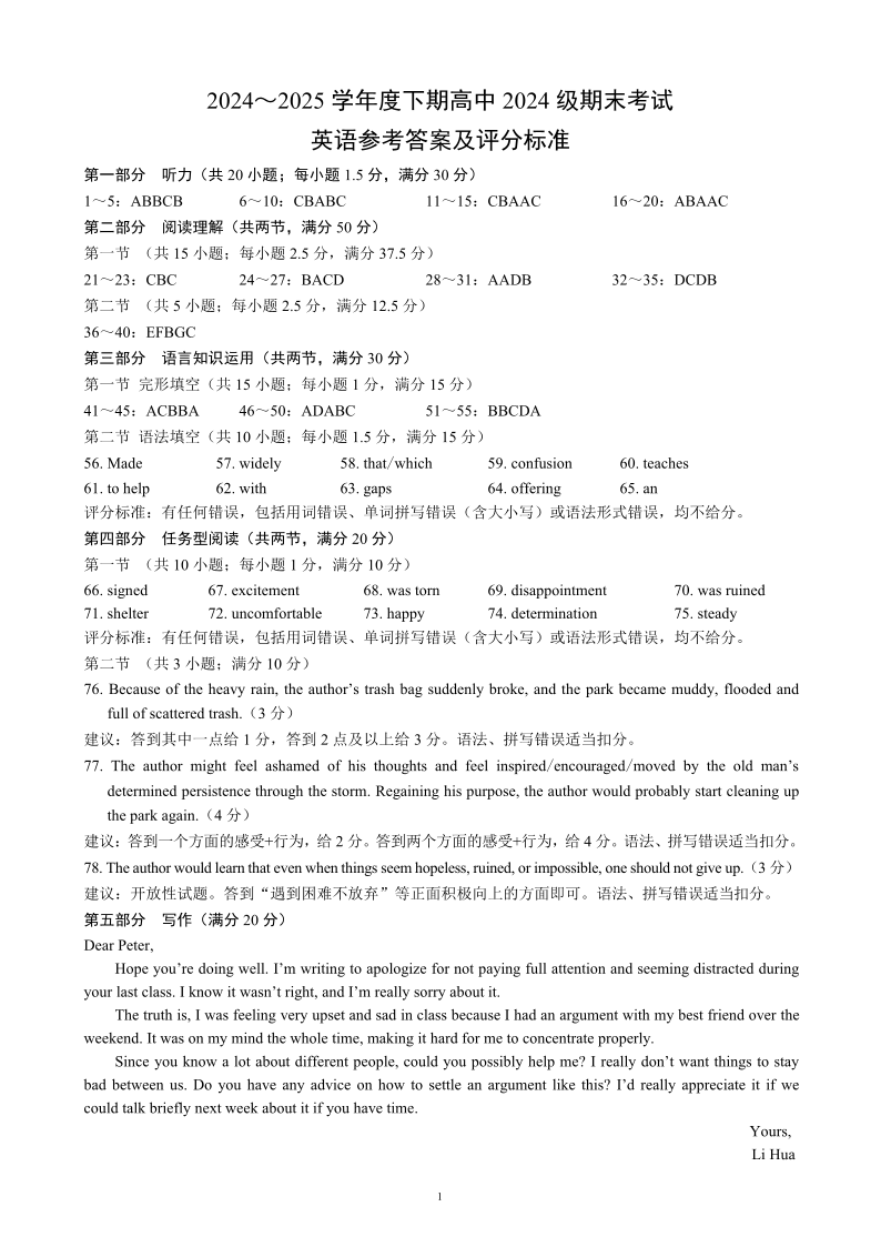 四川省成都市蓉城名校联盟2024-2025学年高一下学期期末考试英语答案