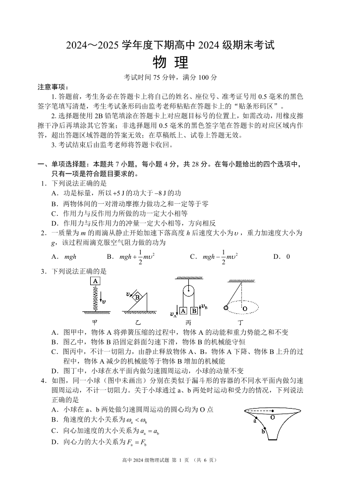 四川省成都市蓉城名校联盟2024-2025学年高一下学期期末考试物理