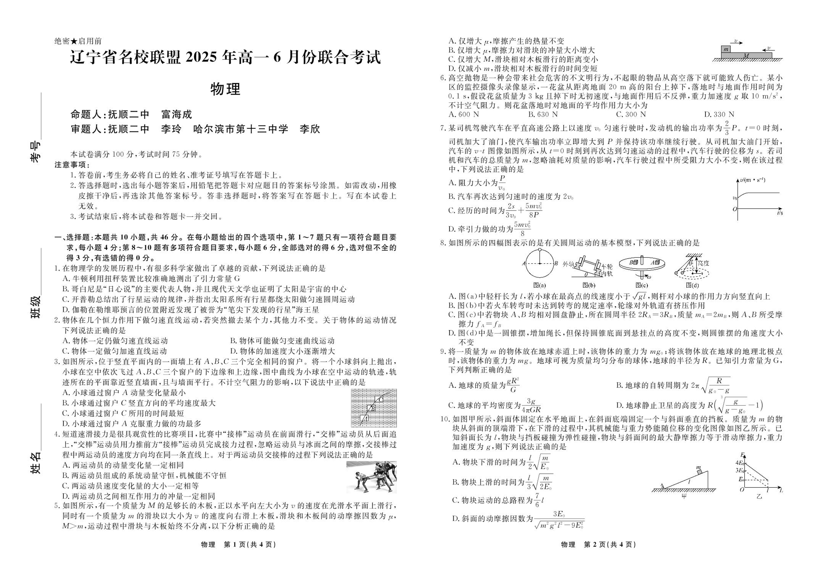 辽宁省名校联盟2024-2025学年下学期6月高一联合考试物理+答案