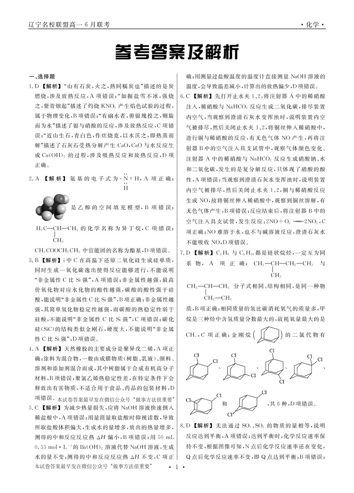 辽宁省名校联盟2024-2025学年下学期6月高一联合考试化学答案