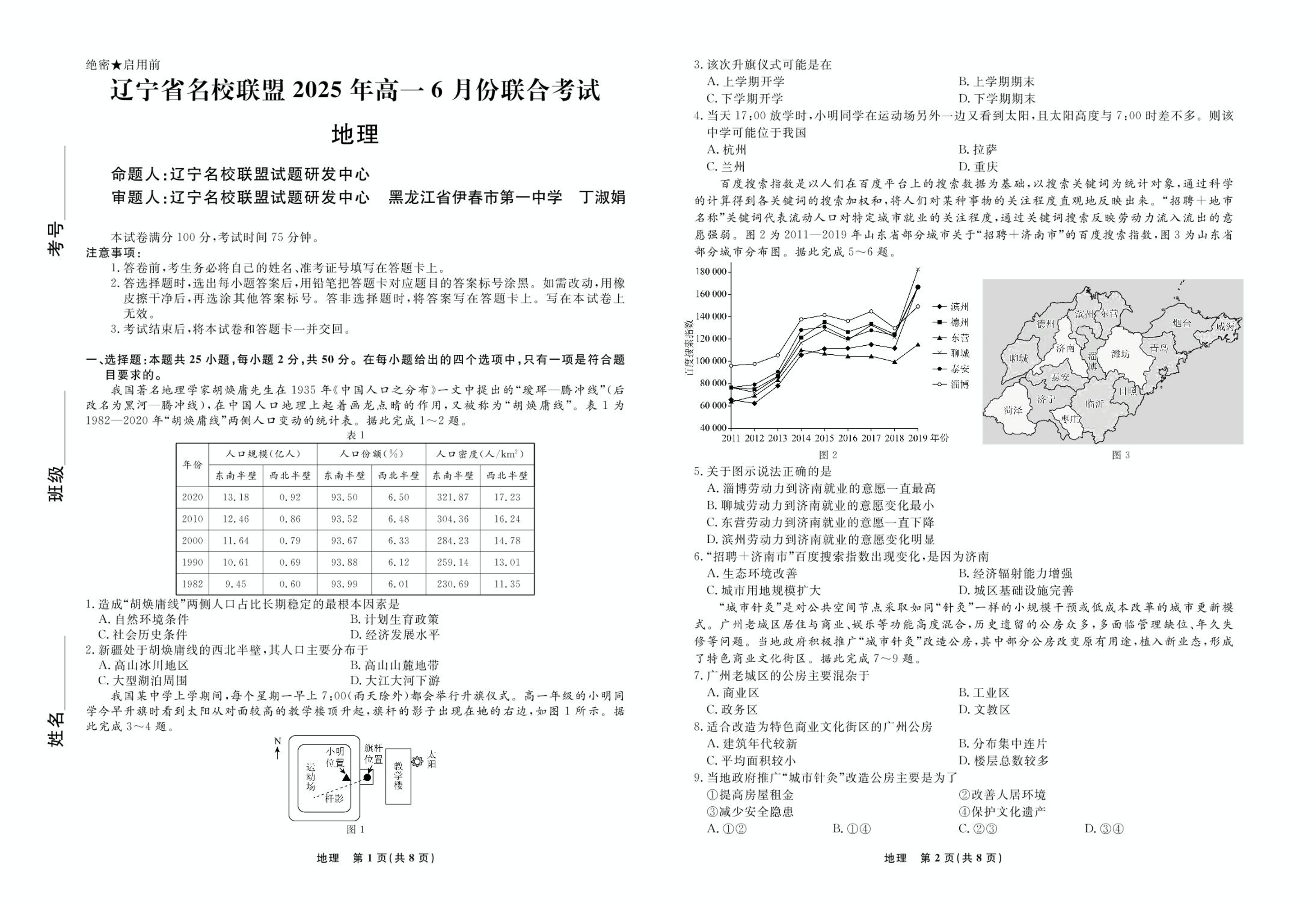 辽宁省名校联盟2024-2025学年下学期6月高一联合考试地理+答案