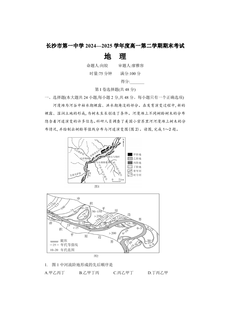 湖南省长沙市一中2024-2025学年下学期6月高一期末考试地理
