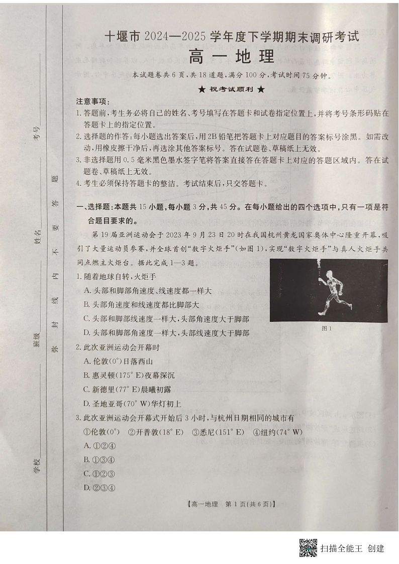湖北省十堰市2024-2025学年高一下学期6月期末考试地理