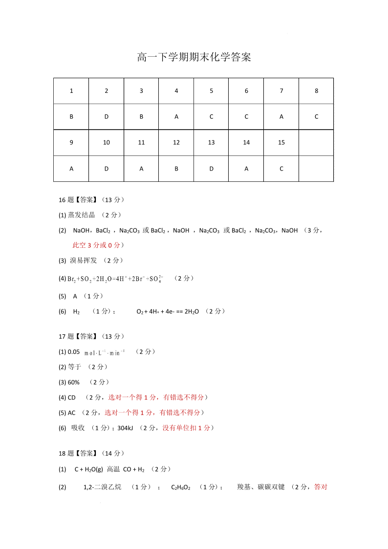 湖北省武汉市部分高中2024-2025学年下学期6月高一期末考试化学答案