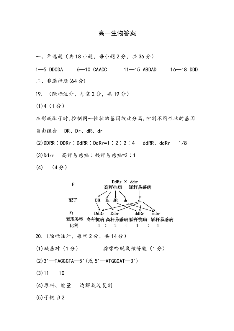 湖北省武汉市部分高中2024-2025学年下学期6月高一期末考试生物答案