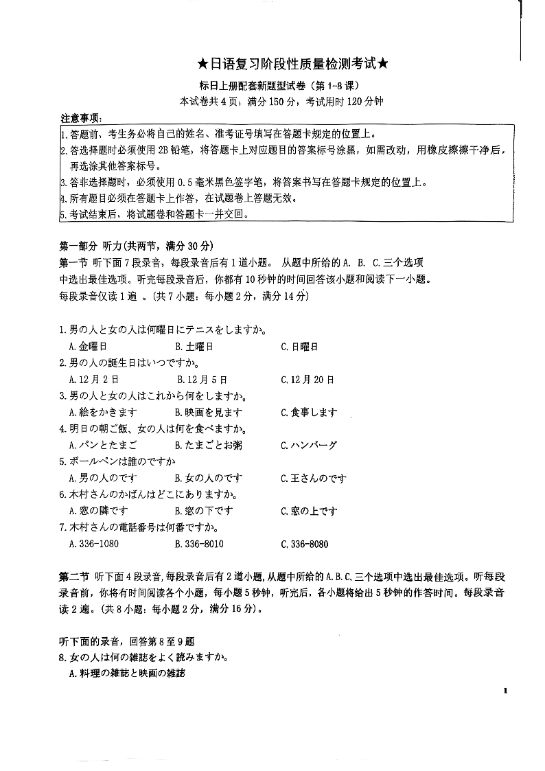 湖北省武汉市部分高中2024-2025学年下学期6月高二期末考试日语