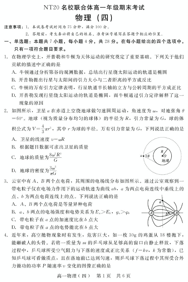 河北省NT20名校联合体2024-2025学年高一下学期期末考试物理