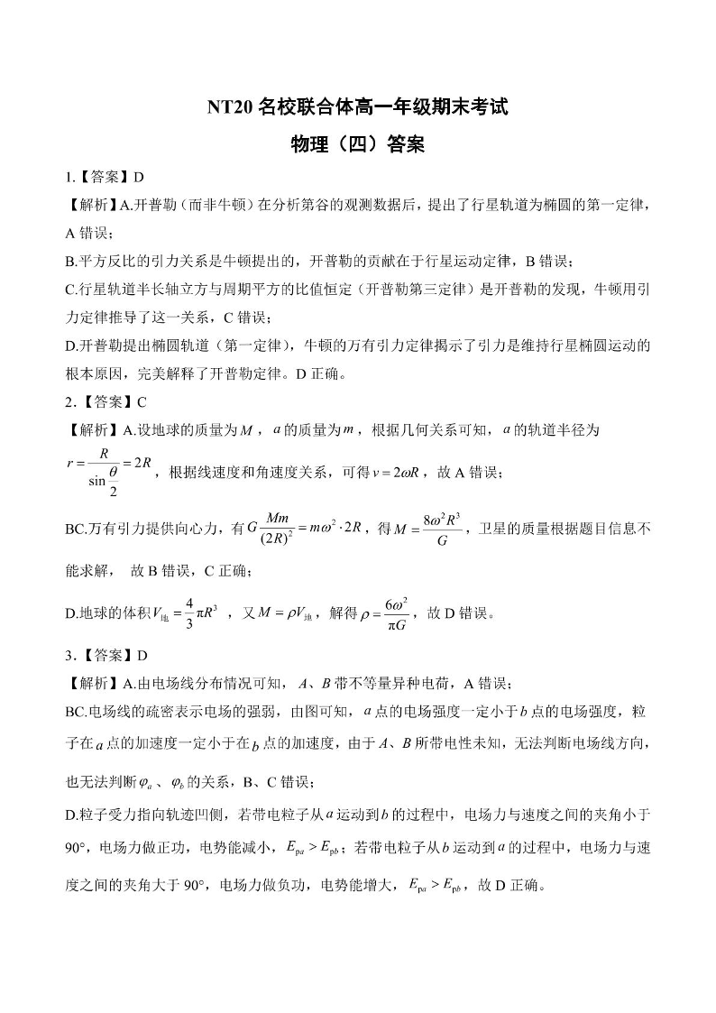 河北省NT20名校联合体2024-2025学年高一下学期期末考试物理答案